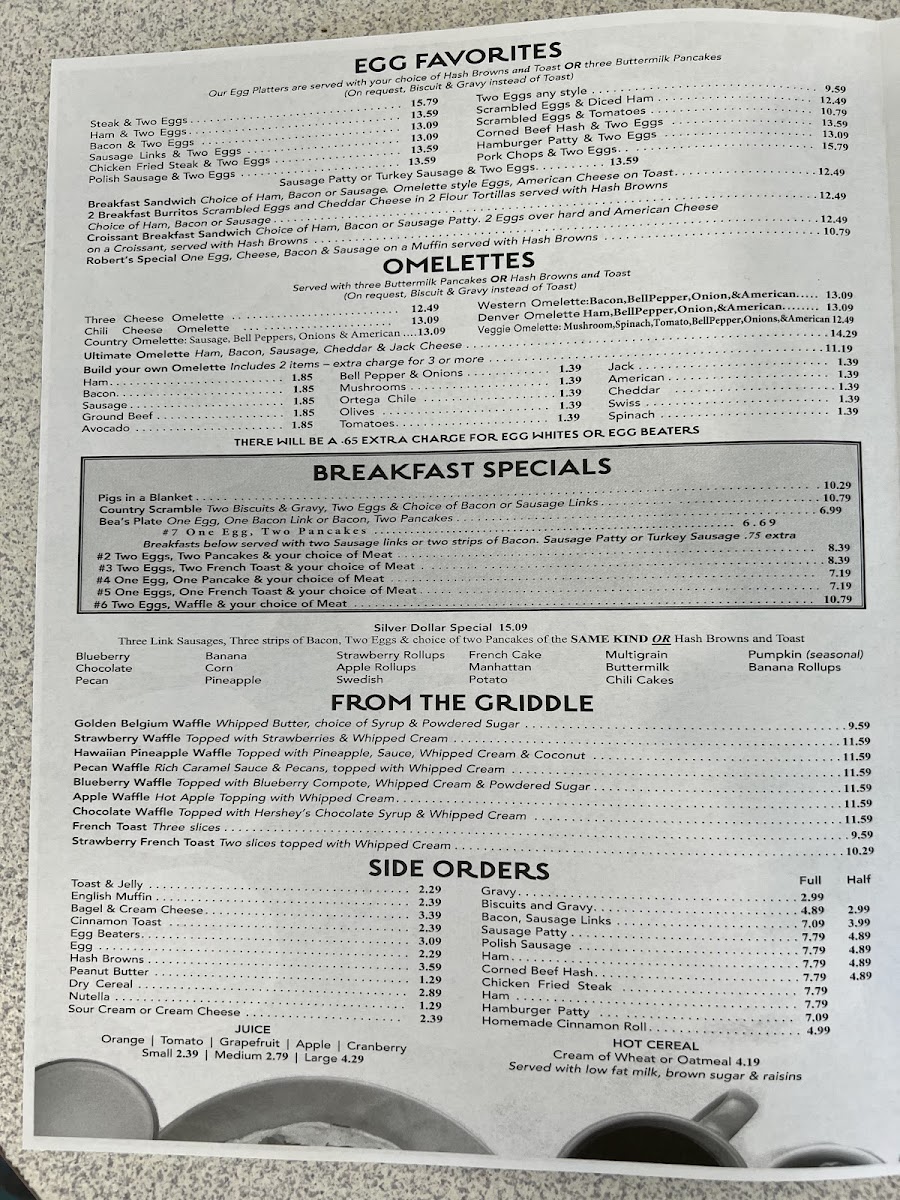 Silver Dollar Pancake House is not just a meal; it’s a whole experience. Filled with the laughter of friends and families and the tantalizing sizzle of breakfast being prepared, the ambiance complements the delicious food perfectly. Whether you're diving into a Country Omelette, savoring rich Oatmeal, or munching on the Cheese Quesadilla as a meal starter, you're in for a treat that takes breakfast seriously.
